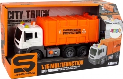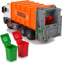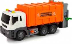 Entdecken Sie ein unterhaltsames und lehrreiches Spielzeug, das einen verantwortungsvollen Umgang mit der Natur fördert. Das orangefarbene Müllauto ist detailliert gestaltet, verfügt über eine funktionale Ladefläche und mit einem einfachen Mechanismus leeren Kinder den Inhalt der Eimer in den Container. Soundeffekte erhöhen die Realitätsnähe und der Reibungsantrieb sorgt für flotte Fahrten, ohne Batterien in den Rädern.