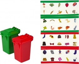 Bunte Eimer und Kärtchen mit Gegenständen machen aus dem Spiel eine lehrreiche Aktivität voller Spaß.