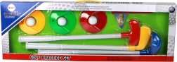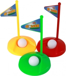 Unterhaltsames Minigolf-Set für Kinder für draußen und drinnen, enthält 3 Kunststoff-Golfschläger in verschiedenen Formen und Farben, 3 Löcher mit Fähnchen und 3 weiße Bälle. Eine großartige Wahl zur Förderung von Motorik, Präzision und für gemeinsamen Familienspaß.