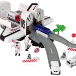 Diese vielseitige Raumfähre dient als mobile Basis für Mini-Fahrzeuge. Dank aufklappbarem oberen Teil und hinterer Klapprampe lassen sich alle Fahrzeuge leicht be- und entladen. Kinder können auf einem „Planeten“ landen, die Fahrzeuge über die Rampe ausfahren und mit der Forschungsmission beginnen.