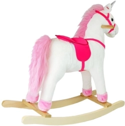 Am Kopf des Einhorns befinden sich Holzgriffe, die für einen sicheren Halt und ein sicheres Spielen sorgen. Der Sattel ist mit bequemen Steigbügeln ausgestattet.
