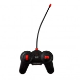 Mit der Fernbedienung lässt sich das Fahrzeug vorwärts/rückwärts und links/rechts steuern. Die Fernbedienung benötigt zwei AA-Batterien, die nicht im Lieferumfang enthalten sind.