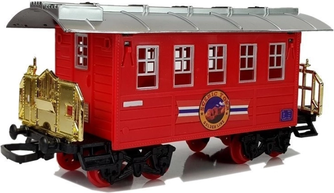 Dieses Spielzeug in Form einer Lokomotive bringt angenehme Erinnerungen an die Weihnachtszeit in Ihr Zuhause. Der Zug ist bei kleinen und größeren Kindern sowie ihren Vätern beliebt. Die Lokomotive besticht durch ihr schönes und detailliertes Design, hergestellt aus resistentem Kunststoff. Die Farbkombination aus intensivem Rot und kontrastierenden schwarzen, silbernen und goldenen Elementen ist wirklich ansprechend. Der hintere Teil des Führerhauses ist mit Fenstern ausgestattet, in die Kinder ihre Figuren platzieren können. Auf dem Spielzeug steht "Golden Line", und das Design ist von echten Zügen aus der Vergangenheit inspiriert.