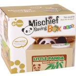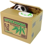 Drücken Sie den Knopf an der Box, und der Panda hebt den Deckel und zieht das Geld mit der Pfote hinein.