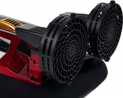 Kann sich ein Fahrzeug im Wasser ohne Propeller oder an Land ohne Räder bewegen? Ja – dank zwei großen Propellern, die Luft mit solcher Kraft ausstoßen, dass das Luftkissenboot abhebt – ein Prinzip ähnlich einem Strahltriebwerk, nur dass das ausgestoßene Medium Luft ist. Dank der gleitfähigen Unterseite kann es sich auf glatten Flächen bewegen. Das steuerbare Luftkissenboot hat eine spezielle Konstruktion, die das Eindringen von Wasser verhindert. Der Startknopf befindet sich auf dem Dach des Boots. Das stromlinienförmige Design des Motorboots zieht die Blicke auf sich. Die Geschwindigkeit erreicht bis zu 20 km/h. Es sendet auf 2,4 GHz. Die Fernsteuerung liegt gut in der Hand und ermöglicht Vorwärts-, Rückwärts- und Seitwärtssteuerung.