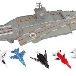 Im Set enthalten sind 5 farbige Jagdflugzeuge, die auf dem großzügigen Deck des Flugzeugträgers starten und landen können.