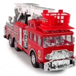Dieses detailliert gestaltete Modell eines Feuerwehrautos bietet Kindern ein authentisches Erlebnis von Rettungseinsätzen. Das rote Design mit silbernen Elementen, funktionalen Lichtern und Soundeffekten überzeugt auf den ersten Blick. Der Star ist die auszieh- und neigbare Leiter mit 360°-Drehung, mit der Höhen bis zu 44 cm erreicht werden.