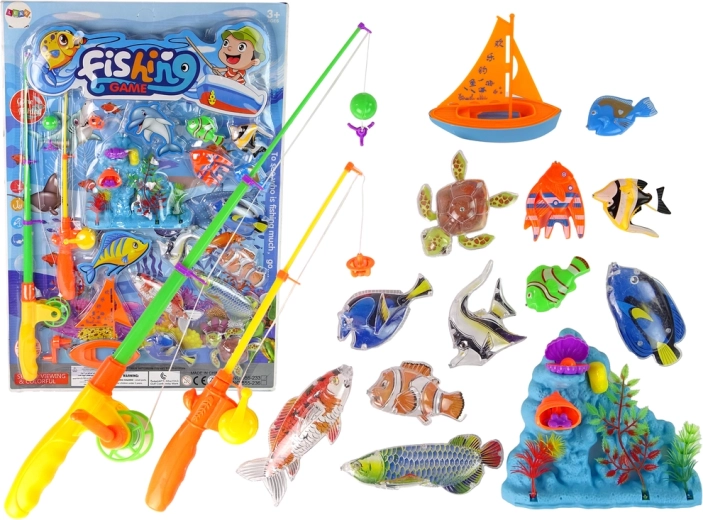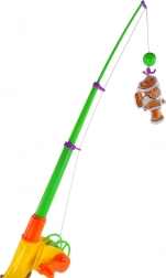 Das Set enthält zwei Angelruten, 11 Fische und Zubehör. Die Ruten verfügen über eine montierte Spule, mit der die Schnur abgesenkt oder angehoben wird, und am Ende ist ein Magnet zum Fangen der Fische befestigt. Das erfordert vom kleinen Angler eine ziemlich hohe Präzision.