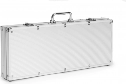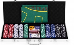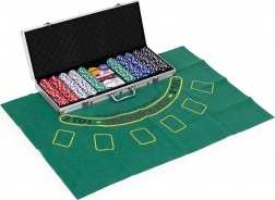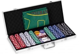 Enthält 500 Chips, 2 Kartendecks, Würfel und eine Spielmatte. All dies in einem praktischen abschließbaren Koffer.