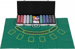 Ideales Set für Spieleabende mit Freunden, das alles Nötige für Poker, Blackjack und Würfelspielen enthält. Enthält 500 Chips in 5 Farben, Blackjack-Spielmatte (90x60 cm), Würfel und einen funktionalen abschließbaren Koffer.