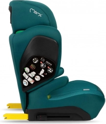 MoMi MEI ist ein Autokindersitz für Kinder im Alter von 3,5 bis 12 Jahren mit einer Größe von 100 bis 150 cm. Er ist mit einem zuverlässigen ISOFIX-Befestigungssystem mit gut sichtbarem Indikator ausgestattet, der die korrekte Installation und die sichere Befestigung am Fahrzeugsitz bestätigt, sowie mit einem verstärkten Seitenaufprallschutz, der im Falle eines Aufpralls Energie absorbiert. Die tiefe, dreischichtige Kopfstütze, die sich je nach Körpergröße des Kindes in 9 verschiedene Positionen einstellen lässt, ist weich und auch auf längeren Fahrten bequem. Der Autokindersitz MoMi MEI erfüllt die Anforderungen der Norm ECE R129/03.