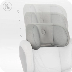 - Einhändige Verstellung der Kopfstütze über eine große Taste auf der Rückseite der Lehne