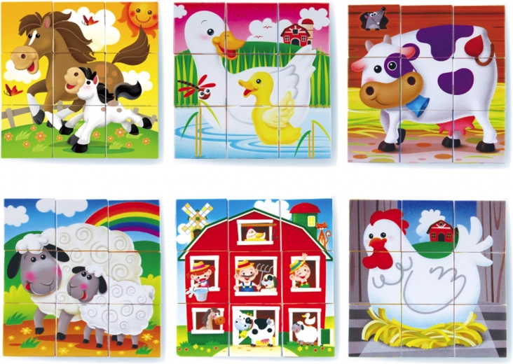 Entdecken Sie den Zauber des Bauernhofs mit leichten Kunststoffwürfeln, die auch für kleine Kinderhände leicht zu greifen sind. Jede Seite der Würfel bildet ein anderes Bild, sodass Kinder 6 verschiedene Motive zusammensetzen und dabei Formen, Farben und Zusammenhänge erkennen lernen können.