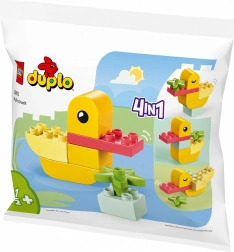 Das Set DUPLO Mein erstes Entchen 4-in-1 ermöglicht es Kindern, verschiedene Modelle zu bauen und immer wieder umzubauen. Es enthält fröhlich bunte Steine, mit denen Kinder Geschichten erfinden können, in denen das Entchen schwimmt, frisst und schläft.