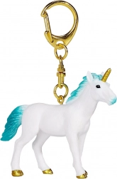 Ein weißes Einhorn mit türkisfarbener Mähne sowie goldenem Horn und Hufen verleiht Schlüsseln und Taschen eine besondere Note.