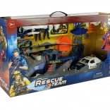 Ein detailreicher Kajak mit Ausrüstung und Figur erweitert die Spielszenarien um Rettungsaktionen auf dem Wasser und in schwer zugänglichem Gelände.