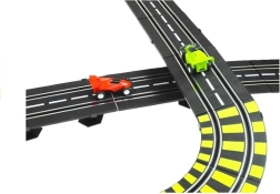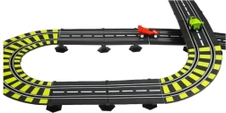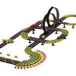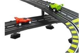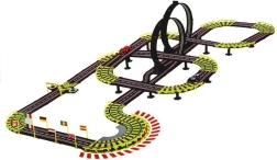 Die Strecke mit einer Länge von ca. 11,57 m (aufgerundet 12 m) umfasst 2 Loopings, erhöhte Brücken, Startpassagen und Dekorationen wie „Berge“, „Wasserfall“ und Tunnel für noch mehr Atmosphäre. Schützende Leitplanken verhindern das Herausfliegen der Autos und gelbe Markierungen in scharfen Kurven unterstützen eine flüssige, schnelle Fahrt. Der umfangreiche Lieferumfang und die einfache Montage und Demontage machen dieses Set zum idealen Geschenk.