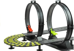 Diese große Kunststoff-Autorennbahn bringt Adrenalinrennen direkt in dein Wohnzimmer. Dank 230 V Netzbetrieb brauchst du keine Batterien und kannst ohne Unterbrechung fahren. Zwei separate Runden mit Rundenzählern ermöglichen Zeitfahrten wie in der Formel und Kämpfe um jede Hundertstel.