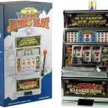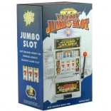 Wie funktioniert der Jumbo-Automat? Alles, was der kleine Spieler tun muss, ist, eine Münze an der entsprechenden Stelle einzulegen und den seitlich angebrachten Hebel zu betätigen. Sobald der Automat in Bewegung gesetzt wird, beginnen sich drei Walzen mit kasinotypischen Motiven zu drehen. Erweist sich die Symbolkombination als richtig, werden Münzen aus dem Automaten ausgeworfen – wenn nicht, erhält das Kind sie beim nächsten Versuch zurück. Die Münzen können auch separat aus dem Automaten entnommen werden. Der Spaß ist nicht die einzige Funktion dieses Automaten – im großformatigen Spielzeug verbirgt sich eine Sparbox. Auf der Rückseite des Spielautomaten befindet sich ein Münzschlitz, sodass das Kind seinen Gewinn sinnvoll verwalten kann.