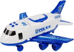 Dieses Polizeitransportflugzeug in Weiß-Blau erinnert realistisch an ein echtes Modell und bietet viele Spielmöglichkeiten. Seitliche Öffnung und ausziehbare Treppe ermöglichen ein bequemes Beladen der Autos, während die Heckrampe deren schnelles Entladen direkt am Einsatzort sicherstellt. Der obere Griff erleichtert Kindern das bequeme „Fliegen“ durchs Zimmer.