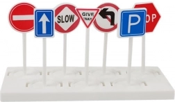 Flugzeug, 3× Polizeiauto, Set mit Verkehrsschildern