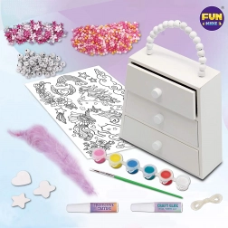 Erstellen Sie ein originales Holzschmuckkästchen mit den Maßen 20x15x5,5 cm mit diesem Set, das alles Notwendige beinhaltet. Kreativität kennt keine Grenzen, so dass Sie es nach Ihrer eigenen Fantasie dekorieren können. Bunte Perlen und andere Verzierungen verleihen Ihrem Werk Einzigartigkeit.