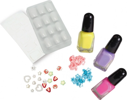 Eröffne deinen eigenen Schönheitssalon direkt zu Hause! Dieses kreative 3D-Nagelset bietet alles für eine schnelle und spaßige Nageldeko: 3 farbige Nagellacke, 12 künstliche Nägel, 12 Aufkleber, 2 Arten von Glitzer und 19 3D-Verzierungen. Dank der einfachen Anleitung gelingt eine tolle Heim-Maniküre auch Anfängerinnen und Anfängern. Ideal für Kinder ab 6 Jahren.
