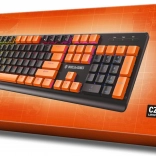 Die robuste Metallkonstruktion ist für anspruchsvolles Gaming und lange Lebensdauer ausgelegt. Verstellbare Füße mit zwei Winkeln helfen, eine bequeme Neigung zu finden und die Handgelenke während Marathon-Sessions zu entlasten. Die zweifarbigen schwarz‑orangefarbenen Tasten fallen ins Auge und verbessern zugleich die Lesbarkeit.