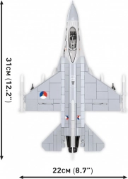 Mit 425 COBI-Bausteinen können Sie dieses ikonische Jagdflugzeug mit Details im Maßstab 1:48 bauen. Das Modell enthält abnehmbare und anpassbare Raketen AIM-9 Sidewinder und AIM-120 AMRAM. Das Set enthält auch eine Pilotenfigur mit Sauerstoffmaske und Helm mit Drucken der niederländischen Luftwaffe.
