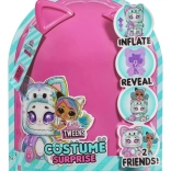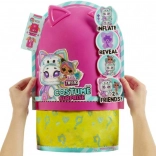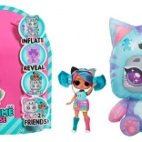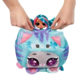 Machen Sie sich bereit für das größte Auspack-Überraschungserlebnis mit L.O.L. Surprise Tweens Kostüm. Öffnen Sie zuerst den Reißverschluss am Boden der Verpackung und entfernen Sie die rosa Hülle, um das geheimnisvolle Wickelpapier zu enthüllen! Sehen Sie zu, wie sich das Papier ausdehnt und reißen Sie es auf, um das niedliche türkisfarbene Katzenkostüm zu enthüllen! Doch die Überraschungen sind noch nicht vorbei! Klappen Sie den Plüschtierkopf der Katze auf und finden Sie die erstaunliche Puppe Emo Emma Tweens im Inneren!