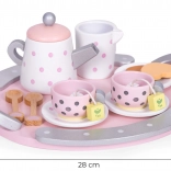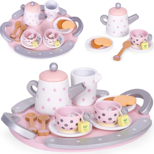 Dank des Sets kann das Kind in die Rolle eines Erwachsenen schlüpfen und zu einem köstlichen Tee und süßer Erfrischung einladen. Neben dem Spiel entwickelt Ihr Kind die Vorstellungskraft, die manuelle Geschicklichkeit und lernt außerdem, Tee zuzubereiten und Tischregeln kennen.