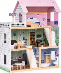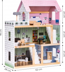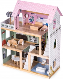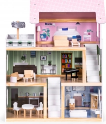 Das ECOTOYS-Puppenhaus verdankt seinen Charme gut gewählten Farben und speziell gestalteten Räumen. Dadurch macht es nicht nur im Kinderzimmer, sondern auch im Wohnzimmer eine hervorragende Figur und sorgt bei allen Haushaltsmitgliedern für Begeisterung.