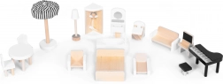 Zum Set gehört außerdem eine Kollektion aus 15 Teilen Holzmöbeln, die nach Belieben herausgenommen und ohne Einschränkungen umgestellt werden können.