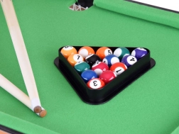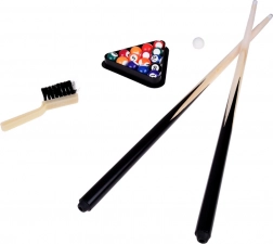 Im Lieferumfang ist alles enthalten: 2 Kinder-Queues, komplettes Kugelset mit Weißer, Dreieck zum Aufstellen, Bürste zur Tuchpflege und Kreide für bessere Stoßkontrolle. Ideal für Einsteiger und gemeinsamen Familienspaß.