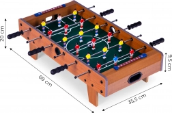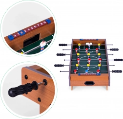 Der Mini Tischfußball ECOTOYS ist eine hervorragende Wahl für Familien- und Freundestreffen. Zwei Punktezähler und rutschfeste Griffe gewährleisten ein einfaches und angenehmes Spiel für zwei Spieler. Die Konstruktion aus Holzmaterialien ist kompakt mit den Maßen 70x35 cm, was eine Platzierung des Tisches auch in kleineren Räumen ermöglicht.