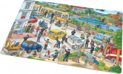 Dieses große Buch begleitet Kinder durch einen ereignisreichen Tag auf der Polizeiwache – von der Suche nach Juwelendieben über das Aufklären illegaler Müllablagerungen bis hin zum Finden eines verlorenen Hundes. Dank der detailreichen Illustrationen und gut verständlichen Texte genießen junge Leser Geschichten, die Beobachtungsgabe, Wortschatz und logisches Denken fördern.