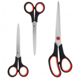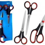 Das universelle Scherenset umfasst drei Paare in unterschiedlichen Größen: groß (20 cm) für Karton und stärkere Materialien, mittel (14 cm) für übliche Büroarbeiten und klein (12,5 cm) für detailreiche und präzise Schnitte. Hochwertiger Edelstahl gewährleistet eine lange Lebensdauer und saubere Schnitte ohne Ausfransen.
