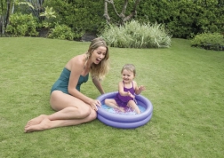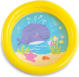 Ein Durchmesser von 61 cm und eine Höhe von 15 cm ermöglichen die Platzierung auch in kleineren Bereichen, sodass Kinder fast überall Wasserspaß haben können.