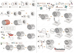 Entnehmen Sie die einzelnen Teile aus den Metallblechen; bei Bedarf verwenden Sie kleine Seitenschneider (nicht enthalten). Die Teile werden mittels Verriegelungen verbunden, die aus einem Haken (Nase) und einer Öffnung bestehen. Biegen Sie die Nase mit einer kleinen Flachzange (nicht enthalten) um und verbinden Sie nach und nach alle Verriegelungen, bis ein sehr realistisches Meisterstück entsteht!