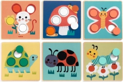 Das Lernspiel DJECO Spotimage unterstützt Kinder bei der Entwicklung der Feinmotorik, des logischen Denkens und der visuellen Farbwahrnehmung. Einfach ein Tierbild auswählen und die farbigen Jetons korrekt in die Öffnungen einsetzen. Dank der robusten Teile lässt sich das Spiel auch von den Kleinsten gut handhaben.