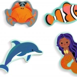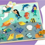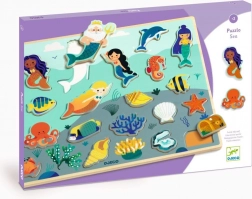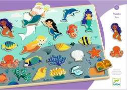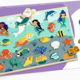 Das Holz-Steckpuzzle von DJECO mit Meereswelt-Motiv verbindet Spielspaß und Lernen. Durch die robusten Holzteile und die Unterlage mit farbigen Konturen lernen Kinder auf natürliche Weise Formen und Farben zu erkennen und entwickeln gleichzeitig ihre motorischen Fähigkeiten weiter.