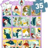 Dieses wunderbare Puzzle erzählt die Geschichte von Rotkäppchen, die als Comic dargestellt ist. Toller Spaß für Familien und Kinder, die sowohl das Puzzeln als auch das Lesen des Märchens genießen. Die Packung enthält nicht nur 35 Puzzleteile, sondern auch ein Poster mit der Geschichte und 3 Figuren aus Karton, die Ihr kreatives Spiel zum Leben erwecken.