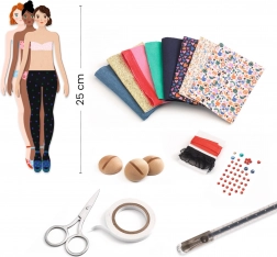 Wir präsentieren das Kreativ-Set für junge angehende Modedesignerinnen, das einen einzigartigen Zugang zur Modegestaltung bietet. Dieser Satz ermöglicht die einfache Erstellung von Mustern und Teilen ohne Nähen.