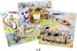 Der Inhalt umfasst 8 doppelseitige Karten zum Ausmalen (zwei Sätze mit jeweils vier Karten) mit Klappen und 3D-Ausstanzungen, die Ihr kreatives Erlebnis bereichern.