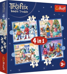 Das Progressive Puzzle Treflíci Weihnachten 4-in-1 bietet fröhliche Wintermotive und eine durchdachte Abstufung der Schwierigkeit. Kinder können die Herausforderung schrittweise von 12 über 15 und 20 bis zu 24 Teilen steigern, wobei jedes fertige Bild ca. 28,5 × 20,5 cm misst. Dank kleinerer Teile bei den schwierigeren Motiven ist der Übergang natürlich und motivierend.