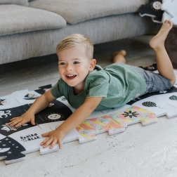 Die Schaumstoff-Puzzles von TREFL mit den Figuren der Treflíci sind eine hervorragende Lösung für sicheres und komfortables Spielen. Das spezielle Material, ähnlich einer dicken Isomatte oder einem mehrschichtigen Mirelon, sorgt für eine ausgezeichnete Stoßdämpfung und ein angenehmes Laufgefühl. Die schwarz-weißen Illustrationen wirken beruhigend und fördern die Konzentration.