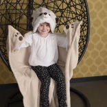 Lustige und weiche, warme Decke mit Kapuze im Tierdesign mit zwei Pfoten-Taschen für die Hände. Ideal für Kinder, die spielen möchten und sich dabei warm und sicher fühlen wollen.