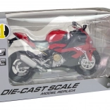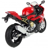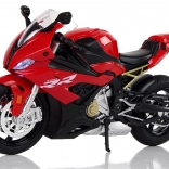 Das Modell der BMW S1000RR wurde in roter Farbe gefertigt, jedes Detail, wie zum Beispiel die Kette am Fahrwerk, wurde mit größter Sorgfalt ausgeführt. Jeder Motorradfan wird begeistert sein. Durch Drücken des hinteren Teils des Motorrads werden Geräusche und Frontlichter aktiviert, bewegliche Lenker ermöglichen das Lenken während des Spiels und Gummireifen haften am Boden. Dank der ausklappbaren Stütze sieht das Motorrad im Regal perfekt aus.