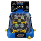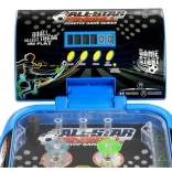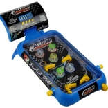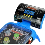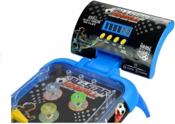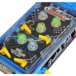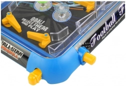 Das Design des Flipperspielzeugs sieht aus wie eine verkleinerte Version eines klassischen Automaten. Die Spielfläche ist mit zwei Beinen und einem Punktzähler verbunden, dessen Position der Spieler nach Bedarf anpassen kann. Dank der Beine ist das Board in einem Winkel aufgestellt, der großartigen Spielspaß sowie das Hochschleudern der Kugel ermöglicht. Ein großer Vorteil des Spielzeugs ist sein Design mit Fußballmotiven. Das blaue Gehäuse der Spielfläche ist mit einem dunklen Hintergrund kombiniert, der bei eingeschalteten bunten Lichtern sensationell aussieht. Nach dem Einlegen der Batterien drücken Sie die Taste ON/OFF und anschließend die danebenliegende START-Taste. Um dem Spiel zusätzliche Sounds hinzuzufügen, drücken Sie einfach die Musik-Taste. Die letzte Taste ist mit TOP SCORE beschriftet; nach dem Drücken wird die höchste erreichte Punktzahl angezeigt. Wir glauben, dass diese Funktion Sie motivieren kann, beim nächsten Spiel noch mehr aus sich herauszuholen. Bei Bedarf kann dieser Zähler zurückgesetzt werden, und das Spiel beginnt von vorn.
