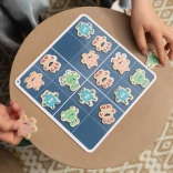 Spieler ergänzen die Chips auf den Spielkarten so, dass sich keine Farbe in Reihe, Spalte oder Quadrat wiederholt – ideal zum Trainieren von Konzentration und Strategie.